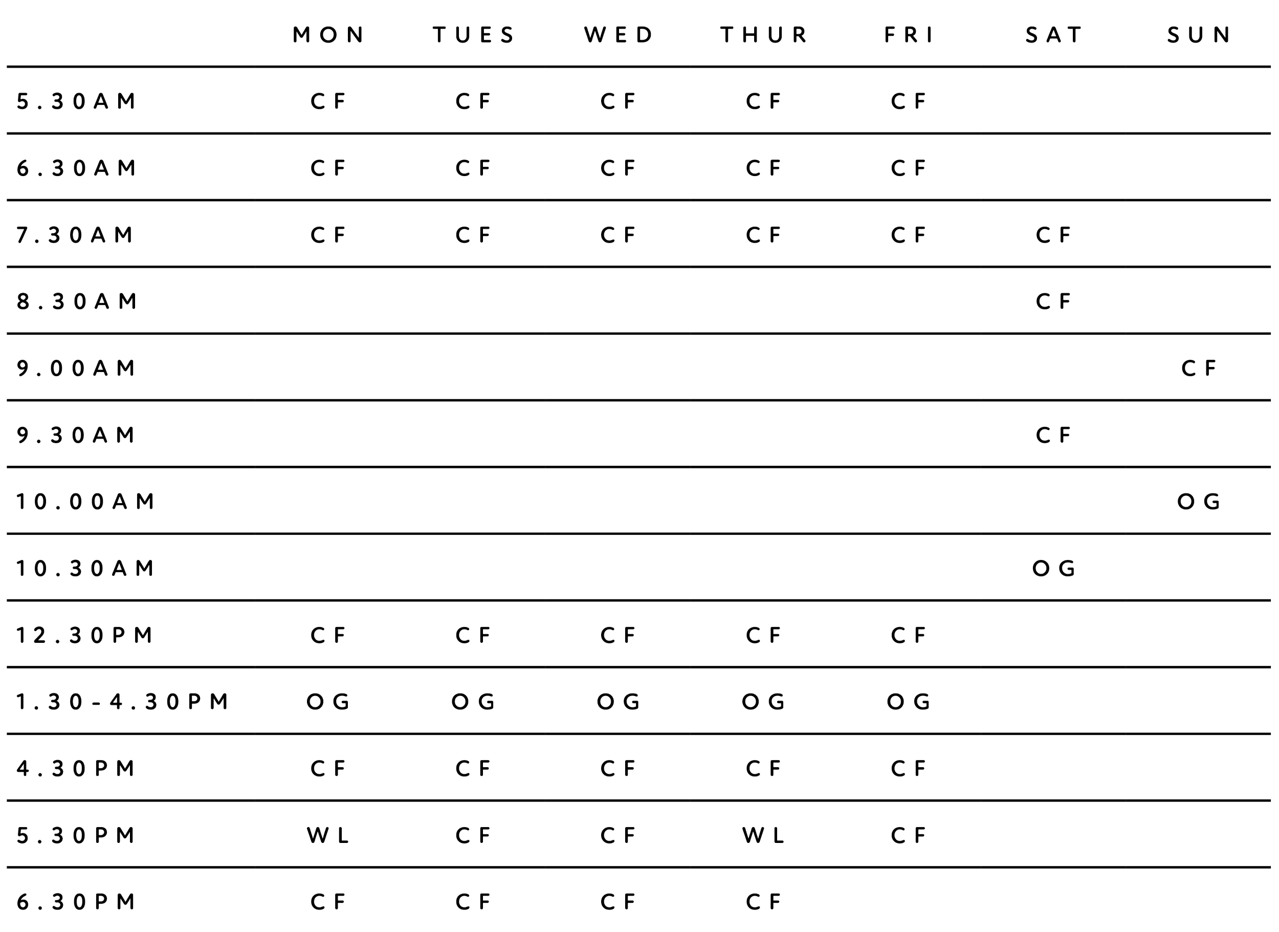 Sessions are programmed for inclusivity. We want members of all ages, fitness levels and skill sets to get the most out of each class. Our focus is ensuring members feel challenged and supported to achieve their goals, whilst having the best hour of their day doing it.